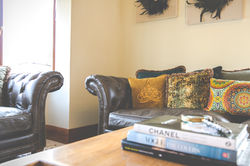 Designer bed linens in velvets and high quality cottons adorn all beds.